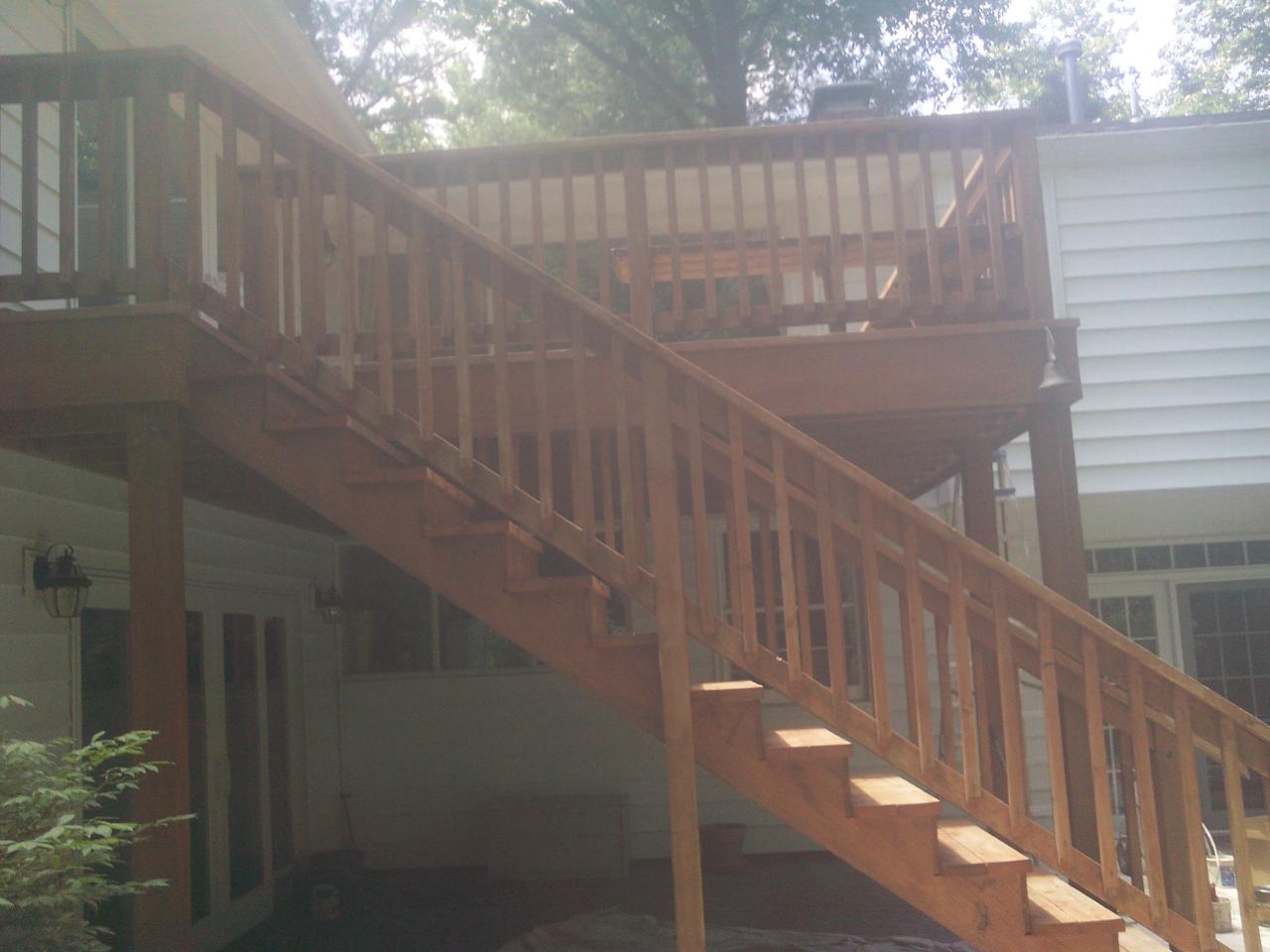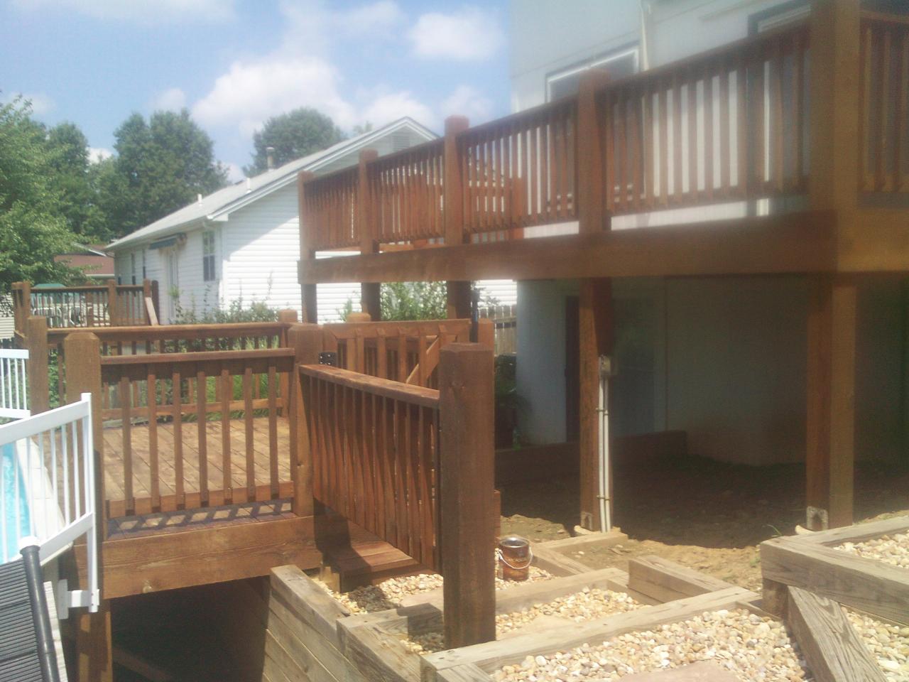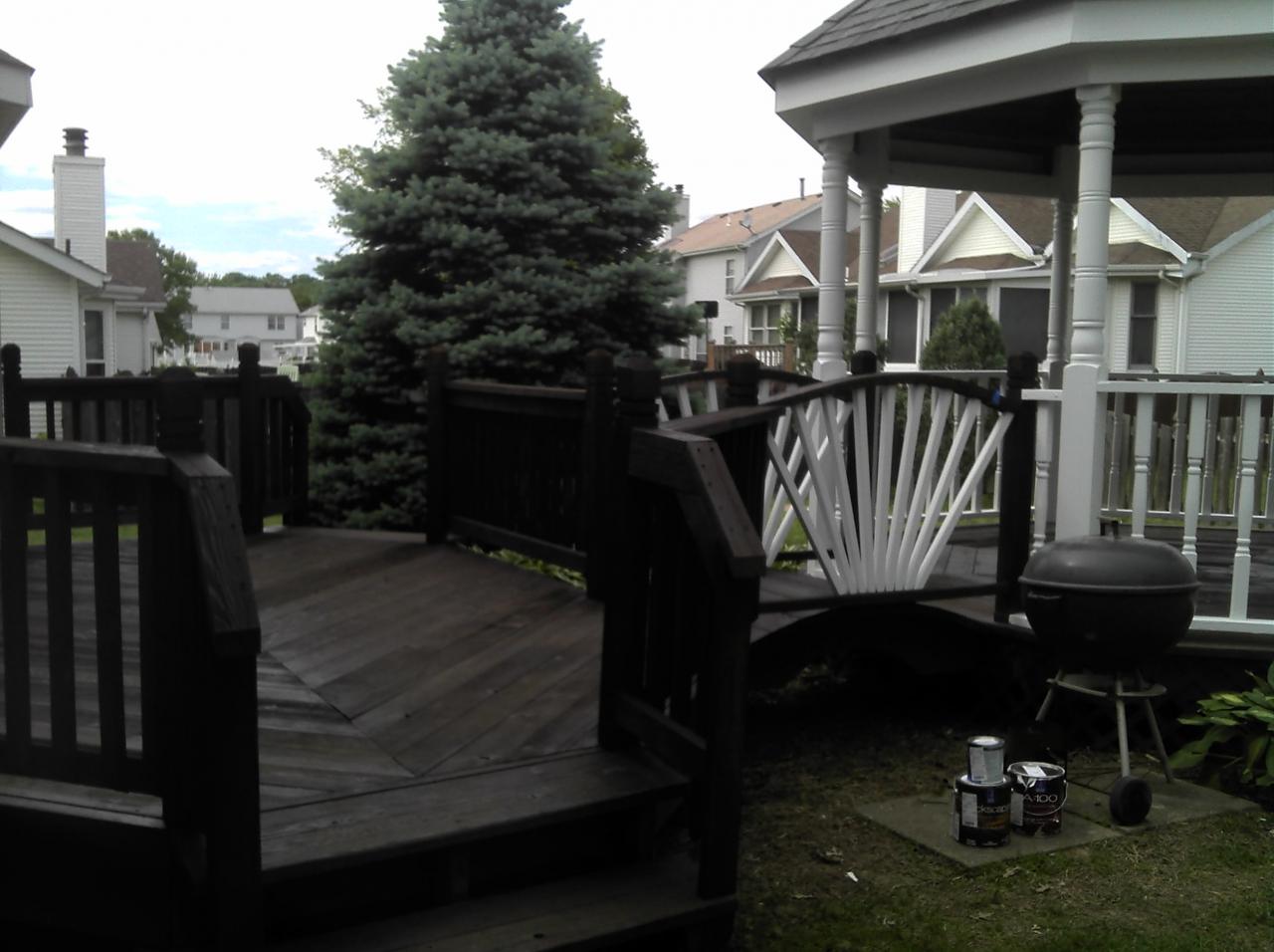 We take great pride in the decks that we refinish. These are some pics of a few of the decks that we have done. We powerwash every deck and clean them using chemicals that help lift of the dirt and brighten up the wood. We chip them if needed. We will then let the deck dry out for a few days before staining your deck. As far as staining goes, we use semi transparent and solid color stains depending on what your are going for. The finished product is beautiful and really adds to the look of your house and also protects your deck for years to come. We only use top quality stains to make sure that they stay protected and do not fade.