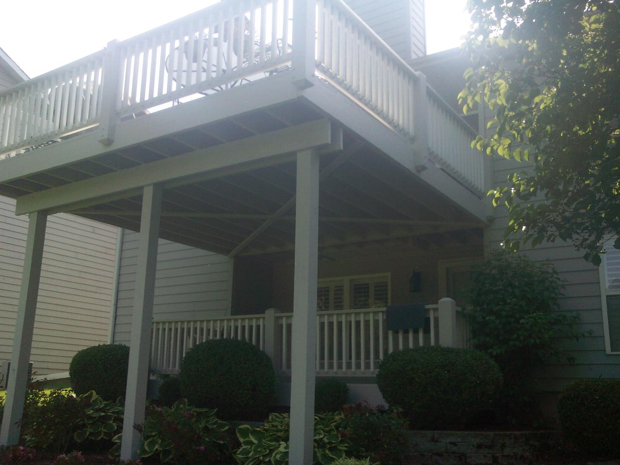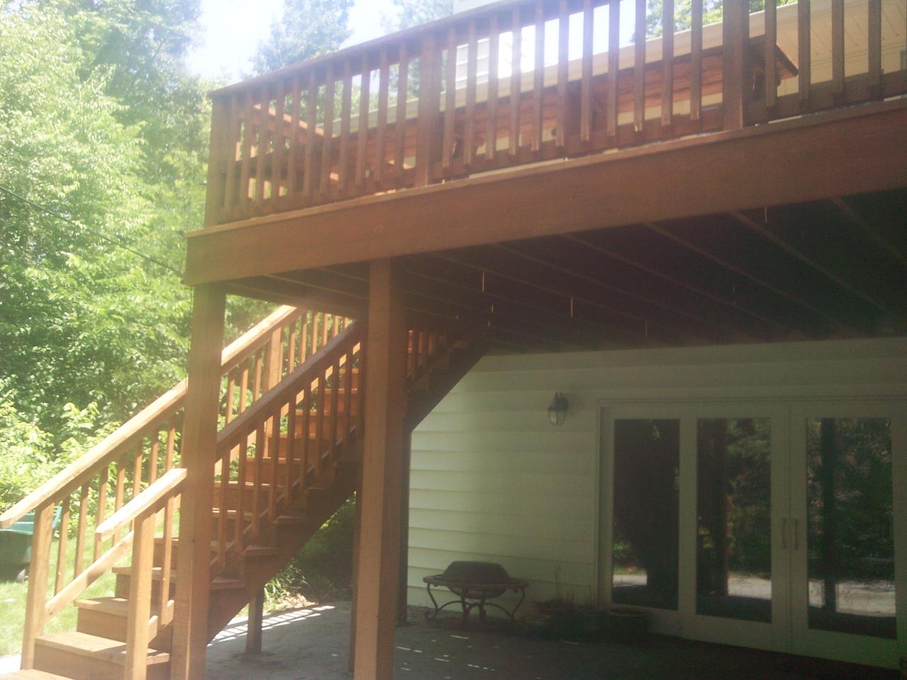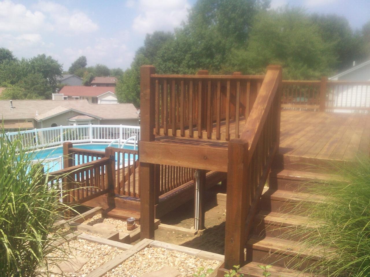 We take great pride in the decks that we refinish. These are some pics of a few of the decks that we have done. We powerwash every deck and clean them using chemicals that help lift of the dirt and brighten up the wood. We chip them if needed. We will then let the deck dry out for a few days before staining your deck. As far as staining goes, we use semi transparent and solid color stains depending on what your are going for. The finished product is beautiful and really adds to the look of your house and also protects your deck for years to come. We only use top quality stains to make sure that they stay protected and do not fade.